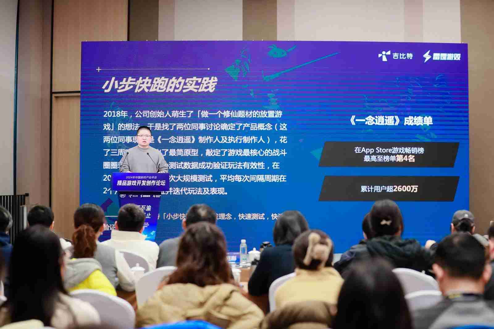 以《一念逍遥》为例,,,,2018年公司创始人萌生想做修仙题材的放置游戏的想法,,,于是找了两位同事讨论了一下产品的概念,,这两位现在是项目的制作人,,,,花了三周的时间把原型做出来,,,,并且确定最初的战斗原型,,以及整个养成的节奏。。通过几次版本迭代验证后,,,也确定后面的内容应该怎么拓展,,,最终在一年左右时间这个项目上线了。。。。当时我们内部有同事看到《⼀念逍遥》上线,,认为品质还不够完美,,,,但是整体营收还不错。。。。就在想那是不是以后我们都做这样的产品??但实际这是错误的认知,,,我们内部不是这么看的。。。游戏在那个时间点上市,,,因为有些市场的考量和营销点的考虑,,,,并不是希望所有项目都是这样。。。。如果它有更好的契机,,希望它可以做得更大、、更好,,,,希望在内核玩法确定之后,,,,外围投入可以越大越好,,所以后面的几个项目是往这个思路上做。。。