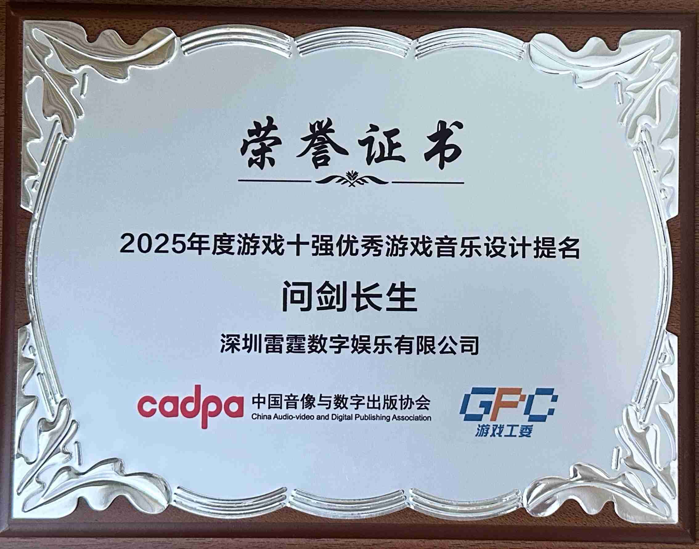公司坚持走精品化道路,,,,打造与时代精神相契合、、、、与海内外大众诉求相契合、、与创作实践相契合的游戏产品,,,,倡导构建具有中华文化特色、、、、弘扬中华美学精神的产品理念,,切实提升游戏文化内涵的传播力影响力。。如此次荣获“2025游戏十强年度优秀游戏音乐设计”提名奖的公司自研产品《问剑长生》以音筑境,,以乐传情,,,,其音乐融合东方传统韵味与现代审美,,,,构建独特听觉世界,,,,运用古筝、、、、笛子、、、、箜篌等传统乐器与现代管弦乐,,塑造灵动古风仙侠氛围。。。