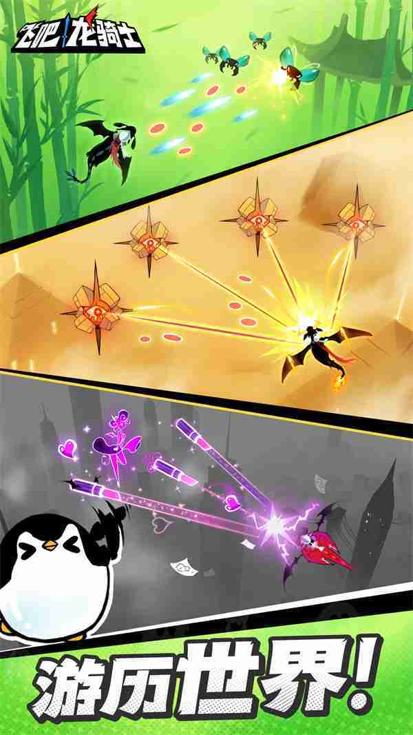 《飞吧龙骑士》是一款集合了飞行弹幕射击、、、、Roguelike要素和挂机养成的休闲手游,,极具创意的吞食子弹反击玩法,,,,突破传统飞行射击的刻板限制,,带来了独特的爽快清屏体验。。。