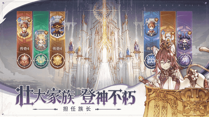 你将体验到纯正王道的冒险剧情,,在这个被伪神入侵的凯斯世界,,,,成神是每一位强者的终极目标,,,,玩家作为守护者家族的族长,,在寻回六大种族成员,,击退威胁凯斯世界的伪神后,,,即有机会带领家族晋升为神,,,登神不朽。。。